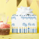 El festival de luces diseña para las 1ras velas azules de la diversión de atracción de Jánuca del bebé con los lunares y las rayas y la estrella de David. El texto dice MI PRIMER JÁNUCA. ¡Original de PinkInkArt!
