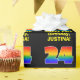Este colorido, alegre y divertido diseño de papel de envoltura con temática de cumpleaños presenta un gran número de "24" con un aspecto gradiente inspirado en el espectro de colores arcoiris, además del mensaje de bienvenida de cumpleaños "Feliz cumpleaños número 24", y un nombre de destinatario de personalizable en negrita en amarillo. El fondo es negro de color. Papel de envolver alegre como este puede ser usado cuando se da un regalo o regalo en honor al 24 cumpleaños de alguien. [~Z0000525]