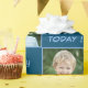 Papel de envoltura azul con 2 fotos que se pueden cambiar junto con el nombre y la edad.