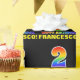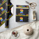 Este diseño de papel de regalo de cumpleaños alegre, divertido y colorido presenta un número grande "2" y el mensaje "FELIZ CUMPLEAÑOS", ambos con un colorido patrón de gradiente de espectro de arcoíris, junto con un nombre de destinatario personalizado en amarillo intenso. El fondo es de color negro. Papel de regalo divertido con tema de cumpleaños como este podría ser utilizado para envolver un regalo o presente que se le da a alguien que está celebrando su segundo cumpleaños.