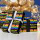 Este colorido, vibrante y divertido diseño de papel de envoltura con temática de cumpleaños presenta un gran número de "34" con una apariencia de gradiente inspirada en el espectro de colores arcoiris, junto con el mensaje de bienvenida de cumpleaños "Feliz cumpleaños número 34", y un nombre de destinatario personalizado con texto amarillo en negrita. El fondo es negro de color. Papel de envoltura con temas de cumpleaños como este puede ser una manera divertida de envolver un regalo o regalar un regalo para celebrar el cumpleaños número 34 de alguien. [~Z0000525]
