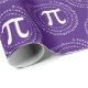 Este papel de envolver de regalo morado y blanco de Pi Day presenta un número de Pi espiral de 3.14 y un patrón de símbolo Pi. El color de fondo es fácil de personalizar dentro de la herramienta de diseño.