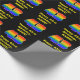 Este diseño de papel envolvente vibrante, divertido y alegre con temática de cumpleaños presenta un gran número de "43" con un aspecto gradiente inspirado en el espectro multicolor de arcoiris, además del mensaje de bienvenida de cumpleaños "Feliz 43 cumpleaños", y un nombre de destinatario editable con texto amarillo en negrita. El fondo es negro de color. Vibrante papel de envoltura con tema de cumpleaños como este podría ser usado cuando se da un regalo o regalo para la celebración de los cuarenta y tres años de alguien. [~Z0000525]