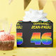 Este colorido, alegre y vibrante diseño de papel envolvente con temática de cumpleaños presenta un gran número de "46" con un aspecto gradiente inspirado en el espectro de colores arcoiris, además del mensaje de bienvenida de cumpleaños "Feliz 46º cumpleaños", y un nombre de destinatario personalizado en negrita en amarillo. El fondo es negro de color. El papel de envolver como este se puede usar cuando se da un regalo o regalo en honor al 46 cumpleaños de alguien. [~Z0000525]