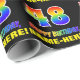 Este colorido, divertido y alegre diseño de papel de envoltura temática de cumpleaños presenta un gran número de "48" y el mensaje "FELIZ CUMPLEAÑOS", ambos con un colorante inspirado en el gradiente del espectro del arcoiris, junto con un audaz nombre del receptor del personalizable amarillo. El fondo es negro de color. Papel de envoltura con temas de cumpleaños divertidos como este puede ser usado para envolver un regalo o regalo que le están dando a alguien que está celebrando su cumpleaños 48. [~Z0000475]