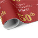 Papel De Regalo 50.º cumpleaños: Elegante, Rojo, Faux Gold Look