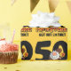 50.o diseño divertido del cumpleaños con el hombre de las cavernas sonriente del dibujo animado que sostiene un club y una antorcha. El texto dice 50 PREHISTÓRICOS PERO NO EXTINTOS. Personalícelo con su propio texto de encargo. ¡Original de PinkInkArt!