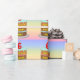 Este animado y alegre diseño de papel de envoltura de cumpleaños incluye una representación al estilo personalizado de una torta de cumpleaños de tres niveles con una vela en forma de número en la parte superior que muestra la edad de "6", junto con el mensaje "FELIZ SEIS CUMPLEAÑOS", y un nombre de destinatario editable. El fondo tiene un patrón multicolor de gradiente inspirado en el espectro arcoiris pastel. Envolver papel como este podría ser una manera divertida de envolver un regalo de cumpleaños o un regalo para alguien que está celebrando su sexto cumpleaños. [~Z0000622]