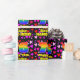 Este divertido y alegre diseño de papel de envoltura de cumpleaños presenta un gran número "76" con un patrón inspirado en el gradiente del espectro arcoiris, junto con el mensaje "Feliz cumpleaños 76", y un nombre personalizado. El fondo tiene un patrón de formas cardíacas rojas, violetas y rosas de varios tamaños. Papel envuelto como este puede ser usado cuando se le dan regalos a alguien en celebración de su 76 cumpleaños. [~Z0000549]