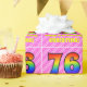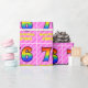 El diseño de este papel de envolvimiento temático de 76 años, festivo y alegre, presenta un gran número "76" con un patrón colorido inspirado en el aspecto de un espectro arcoiris. También incluye el mensaje "Feliz cumpleaños número 76", y un nombre de personalizable. El fondo está decorado con rayas rosa claro y rosa oscuro que contienen formas cariñosas de corazón rosado. El papel de envolver como este se puede usar cuando se da un regalo o regalo en honor al cumpleaños 76 de alguien. [~Z0000415]
