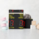 Este tonto y geek diseño de papel de envoltura con temática de cumpleaños presenta un gran número "77" con un aspecto inspirado en la pantalla digital de siete segmentos de color rojo, junto con el mensaje "Feliz cumpleaños 77", y un nombre editable en texto amarillo nerd, con un fondo de color negro. Papel de envoltura con temas de cumpleaños como este puede ser una manera divertida de envolver un regalo o regalar un regalo para celebrar el cumpleaños setenta y siete de alguien. [~Z0000387]