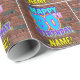 Este divertido diseño de papel de envoltura con temática de cumpleaños muestra el mensaje "FELIZ 80º CUMPLEAÑOS", con un colorido, vibrante, grafiti y arte urbano inspirado, además de un nombre de destinatario de personalizable. El fondo está decorado con un patrón inspirado en el aspecto de una pared de ladrillo. Papel de envoltura con temas de cumpleaños como este puede ser una manera divertida de envolver un regalo o regalar un regalo para celebrar el ochenta cumpleaños de alguien. [~Z0000533]