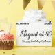 Una moda y un diseño simple hecho en texto negro que dice "Elegante a los ochenta" y "Feliz Cumpleaños". El texto puede cambiarse y personalizarse para adaptarlo a sus necesidades.