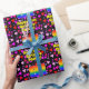 This cheerful and happy birthday themed wrapping paper design features a large number “81” with a rainbow spectrum gradient inspired pattern, along with the message “Happy 81st Birthday,”, and a customizable name. The background features a pattern of pink, red, and purple heart shapes of various sizes. Personalized birthday themed wrapping paper like this might be a fun way to wrap a gift or present being given to celebrate somebody’s 81st birthday. [~Z0000549]