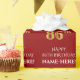 Este elegante y lujoso diseño de papel envuelto con temática de cumpleaños tiene el mensaje "FELIZ CUMPLEAÑOS 86", un nombre de personalizable, y el número de cumpleaños "86" que tiene un patrón de apariencia de imitación de oro y imitación. El fondo es rojo. El papel de envolver como este se puede usar cuando se preparan regalos para ser entregados en celebración del cumpleaños 86 de alguien. [~Z0000491]