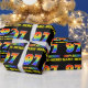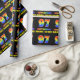 Este divertido, colorido y alegre diseño de papel de envoltura de cumpleaños presenta un gran número de "97" y el mensaje "FELIZ CUMPLEAÑOS", ambos coloreados con un patrón inspirado en el gradiente del espectro del arcoiris, junto con un audaz nombre del destinatario del personalizable amarillo. El fondo es negro de color. Papel de envolvimiento con temas de cumpleaños divertidos como este puede ser usado para envolver un regalo o regalo que le están dando a alguien que está celebrando su cumpleaños 97. [~Z0000475]