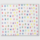 El diseño presenta el alfabeto en un patrón de letras de plantilla brillantes y coloridas sobre un fondo blanco. Diseñado para coordinar con la "Colección de baby shower ABC".