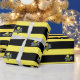 Abejas de púas cortas sobre fondo rayado negro y amarillo. ¡Ideal para todos!