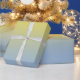 El degradado mínimo amarillo a azul claro añade un acento colorido a tus regalos.