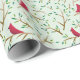Los cardenales lindos, retro-inspirados, rojos se sientan entre ramas de árbol modernas del estilo del ilustracion contra una verde menta suave que da a este papel de regalo del navidad un ambiente dulce y sutil de las vacaciones de invierno. Personalice el modelo para adaptarse a su estilo cambiando el fondo de la verde menta al color de su opción usando el recogedor del color haciendo clic el "personalizar él" opción.