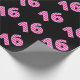 Este divertido diseño de papel envolvente presenta el número "16" con un patrón rayado rosa oscuro y rosa claro, sobre un fondo de color negro. El papel de envolver como este puede ser usado cuando se envuelven regalos para celebrar el 16 cumpleaños de alguien, o el 16 aniversario de una pareja, o algún otro evento o hito decimosexto. [~Z0000379]