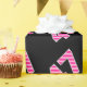 Este divertido diseño de papel envolvente presenta el número "47" con un patrón de rayas rosa claro y rosa oscuro, sobre un fondo de color negro. El papel envuelto como este puede ser usado cuando se envuelven regalos o regalos para celebrar el 47 cumpleaños de alguien, o el 47 aniversario de un boda de una pareja, o algún otro evento o hito de cuarenta y siete años. [~Z0000379]