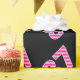 Este divertido diseño de papel envolvente presenta el número "87" con un patrón de rayas rosa claro y rosa oscuro, sobre un fondo de color negro. El papel de envolver como este puede ser usado cuando se dan regalos para celebrar el cumpleaños 87 de alguien, el 87 aniversario de un boda de una pareja, o algún otro evento o hito de ochenta y siete años. [~Z0000379]