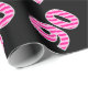 Este divertido diseño de papel envolvente presenta el número "90" con un patrón rayado rosa claro y rosa oscuro, sobre un fondo de color negro. El papel de envolver como este puede ser usado cuando se envuelven regalos o regalos para celebrar el cumpleaños 90 de alguien, el 90 aniversario de una pareja, o algún otro acontecimiento o hito de los noventa. [~Z0000379]