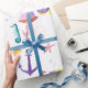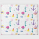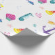 Patrón acuático costero con abundantes ilustraciones de vida marina en hermosos turquesa, rosa y amarillo. Visita nuestra tienda para ver más papel de embalaje adecuado para los cumpleaños de los niños y duchas para bebés.