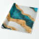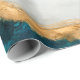 Papel De Regalo Acuarela y dorado Resumen de ondas turquesas