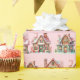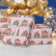 Añada el toque perfecto a sus regalos de vacaciones con este adorable y rosa casa de jengibre pastel envuelto en papel.