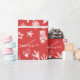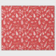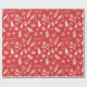 Papel de envolver de Navidad y Año Nuevo. Conjunto de vacaciones de invierno con ramas de abeto, bayas de acebo, árbol de Navidad, estrellas, guantes calientes y tazas, adornos y ornamentos de Navidad. Patrón cálido y lindo dibujado a mano sobre fondo rojo.