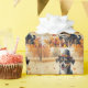 Una pintura acuarela de un perro alegre sentado en medio de un montón de hojas caídas vibrantes, rodeado de pequeñas calabazas y bellotas dispersas. El perro lleva un pequeño gorra peregrino y vigas de alegría, capturando el espíritu del Día de Acción de Gracias. Como telón de fondo, los campos de suave cosecha y los árboles de tonos dorados crean un ambiente campestre tranquilo. Las texturas suaves y los tonos cálidos y mudos del otoño le dan al lugar un ambiente acogedor y nostálgico, perfecto para celebrar la belleza de la temporada.