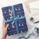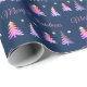 Papel De Regalo Agradables árboles rosas y azul Feliz Navidad