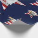 Estrellas de cinco puntos cubiertas con la bandera estadounidense. Una cabeza blanca de un águila calva sobre las estrellas. Cada águila es diferente. Papel de envoltura patriótico único para cualquiera. Puede transferir este diseño a otro producto de su elección, incluyendo bolsas de regalo, tela, mantas, almohadas y muchos otros. ¡Diviértete y sé feliz!