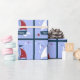 Diseño gráfico de veleros, delfines y gaviotas sobre papel de envoltura. El ajuste de regalo tiene una plantilla para su personalización. Diseñado por Charmaine Paulson