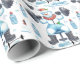 Encuentra aquí un caprichoso patrón de papel envuelto de vacaciones con un levantador de pesas de snowman encaramado en un banco de entrenamiento en un gimnasio helado, agarrando una barbacoa. A su alrededor hay botellas de agua, en medio de una suave cascada de copos de nieve. Está cansado en un gorra, pantalones cortos y fuertes botas de trabajo.