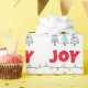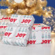 "Alegría" Texto con Navidades iluminando y tres árboles de Navidad azules.