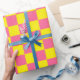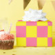 Arte digital abstracto de cuadrados amarillos y rosas en una formación de cuadros a cuadros.