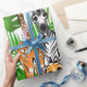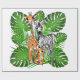 Papel De Regalo Amigos de Safari, jirafa, cebra, tigre, hojas de p