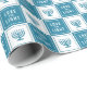 ¡Envuelve tus regalos de Hanukkah con estilo con este hermoso papel de envoltura a cuadros! El diseño combina cuadrados verde azulados y blancos oscuros con ilustraciones de menorah turquesa y "Amor y luz" con letras blancas modernas.