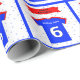 Papel de envoltura personalizado para el sexto cumpleaños de un niño. Añade su nombre a este divertido diseño de una camiseta deportiva roja y azul sobre un fondo estrellado. Hay disponibles tarjetas de cumpleaños coincidentes.