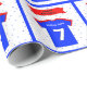Agregue un nombre para personalizar este papel de envoltura para el séptimo cumpleaños de un niño. Este divertido diseño tiene una camiseta deportiva roja y azul con fondo estelar. También hay disponibles tarjetas de cumpleaños coincidentes.