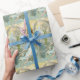 pintura vintage en pasteles con un ángel vestido de azul claro y sosteniendo flores.