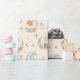 El diseño presenta un suave color crema que crea un ambiente cálido y acogedor. Presenta retratos acuáticos de un gato, un oso, un zorro y un conejo de diseño encantador, todo en un estilo vintage. Los retratos están enmarcados por hermosas flores que florecen en tonos suaves rosa, azul y amarillo.