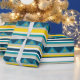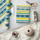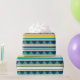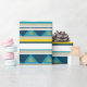Patrón de tríángulos amarillos, azules, blancos y azules.