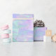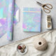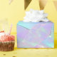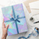 Un papel de envolvimiento verde azulado y morado de diseño iridiscente perfecto para ese aniversario especial, boda o cumpleaños.