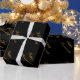 Feliz aniversario oro y elegante envolvimiento negro de regalo