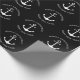 Navidades de texto personalizado blanco y negro de ancla náutica / Papel de ajuste de regalo de Año Nuevo. Texto de personalizable completo