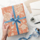Papel de envolvimiento con un diseño de William Morris, el renombrado diseñador inglés del movimiento Artes y Oficios, que exhibe a Wild Tulips (1884) que se encuentran en un entorno de durazno. Este patrón se inspira en brocadas turcas.